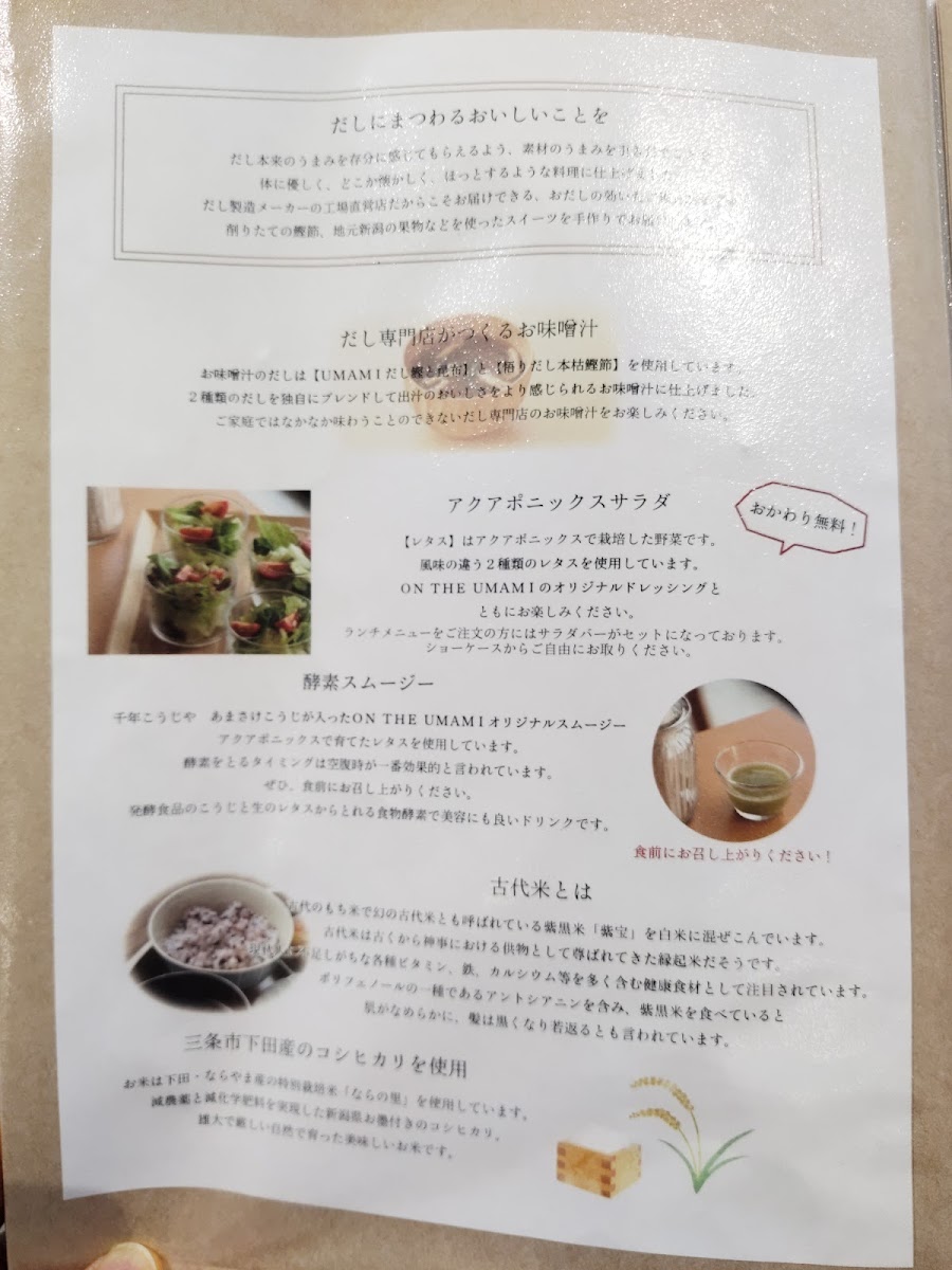Welcome to ON THE UMAMI, a delightful café and spice store nestled in the heart of Sanjo, Niigata. This unique establishment focuses on the essence of umami, creating a menu that elevates traditional Japanese flavors. Guests can indulge in dishes that highlight the depth of umami, such as their highly praised UMAMI御膳, featuring choices like tender hamburgers and crispy chicken.